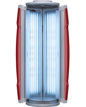 Tento vertikální solárium má 28x100W L trubic a tělové vetráky. Solárium lze objednat v barevní kombinaci Lounge Red Metallic a Titanium Bronze Met. Ještě příjemnější opalování zajistí osvěžující tělový ventilátor zabudovaný ve vrchní části. Díky němu bude po celou dobu relace příjemná teplota a vy si užijete báječnou relaxaci. Dopřejte si svojí denní dávku vitaminu D v pohodli Vašeho domova.Termín dodání je 7-10 pracovních dnů.